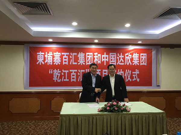 達(dá)欣集團(tuán)第一個(gè)海外項(xiàng)目——乾江百匯于4月19日在柬埔寨金邊大酒店簽約,該項(xiàng)目是由柬埔寨百匯投資集團(tuán)與達(dá)欣集團(tuán)以共同合作、共同開發(fā)的新型商業(yè)模式來運(yùn)營(yíng)。柬埔寨百匯集團(tuán)林財(cái)通勛爵、林寶庭總經(jīng)理與達(dá)欣集團(tuán)董事長(zhǎng)馬和軍、黨委書記劉厚純、副總經(jīng)理徐仁忠、上海佩里建筑規(guī)劃設(shè)計(jì)公司創(chuàng)始人鄭翊等共同見證了項(xiàng)目的簽字活動(dòng)。