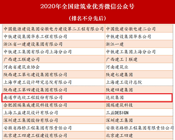 近日,由建筑時(shí)報(bào)社主辦的2020年建筑業(yè)微信公眾號運(yùn)維經(jīng)驗(yàn)交流研討會(huì)暨2020年全國建筑業(yè)優(yōu)秀微信公眾號頒獎(jiǎng)典禮在揚(yáng)州召開。會(huì)上,公布了2020年全國建筑業(yè)“最具影響力”微信公眾號和2020年全國建筑業(yè)優(yōu)秀微信公眾號榜單。達(dá)欣集團(tuán)獲得2020年全國建筑業(yè)優(yōu)秀微信公眾號。